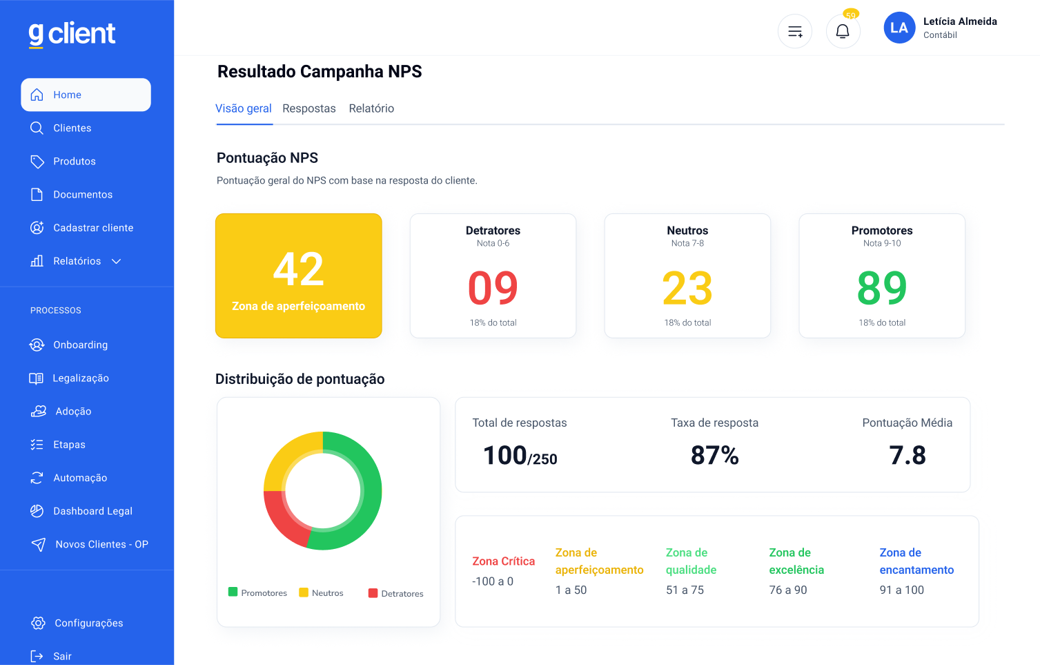 Gerenciar campanhas de NPS no G Client é simples, prático e pensado para a realidade dos escritórios de contabilidade. Desde o cadastro da campanha até a análise das respostas, cada etapa foi desenhada para aproximar o escritório dos seus clientes, fortalecer parcerias e descobrir novos caminhos.